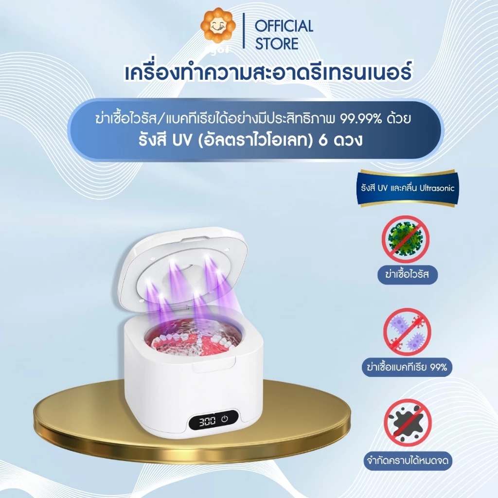 เครื่องทำความสะอาดรีเทนเนอร์และอุปกรณ์ในช่องปากแบบใส มาตรฐาน Clinical Grade พร้อมเทคโนโลยี UV-C 6 ดวง และคลื่น Ultrasonic 49,000Hz การดูแลความสะอาดของรีเทนเนอร์ ฟันปลอม หรืออุปกรณ์จัดฟันใส ไม่ควรหยุดแค่การล้างด้วยน้ำเปล่าหรือแปรงธรรมดา เพราะคราบโปรตีน เชื้อรา และแบคทีเรียบางชนิดไม่สามารถมองเห็นได้ด้วยตาเปล่า และอาจเป็นต้นเหตุของกลิ่นปากหรือการอักเสบภายในช่องปากในระยะยาว รุ่นนี้ออกแบบมาเพื่อตอบโจทย์การทำความสะอาดที่ “ครบทั้งในระดับพื้นผิวและระดับจุลชีพ”