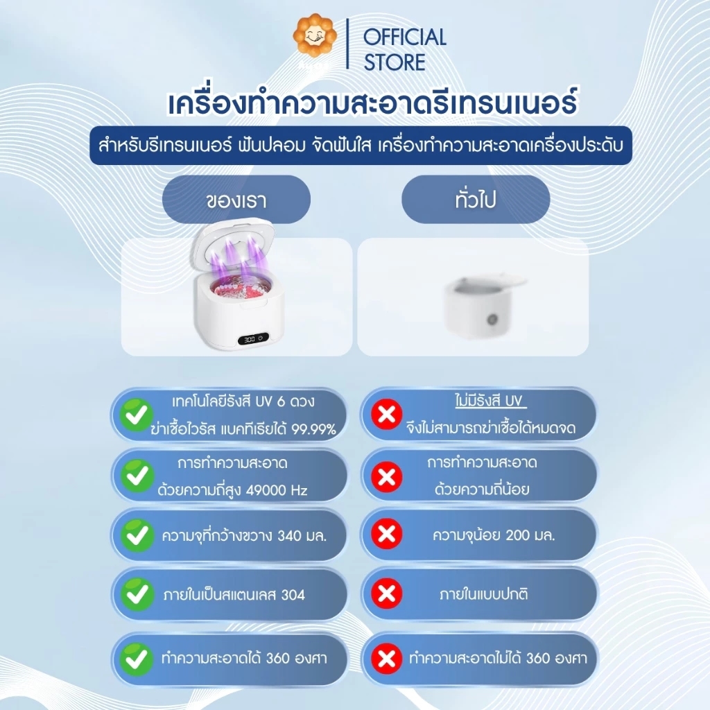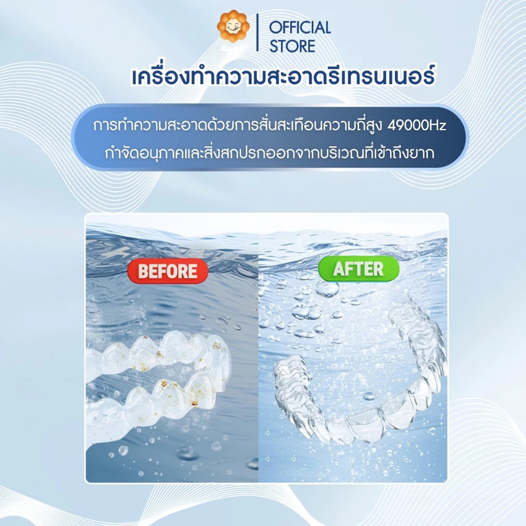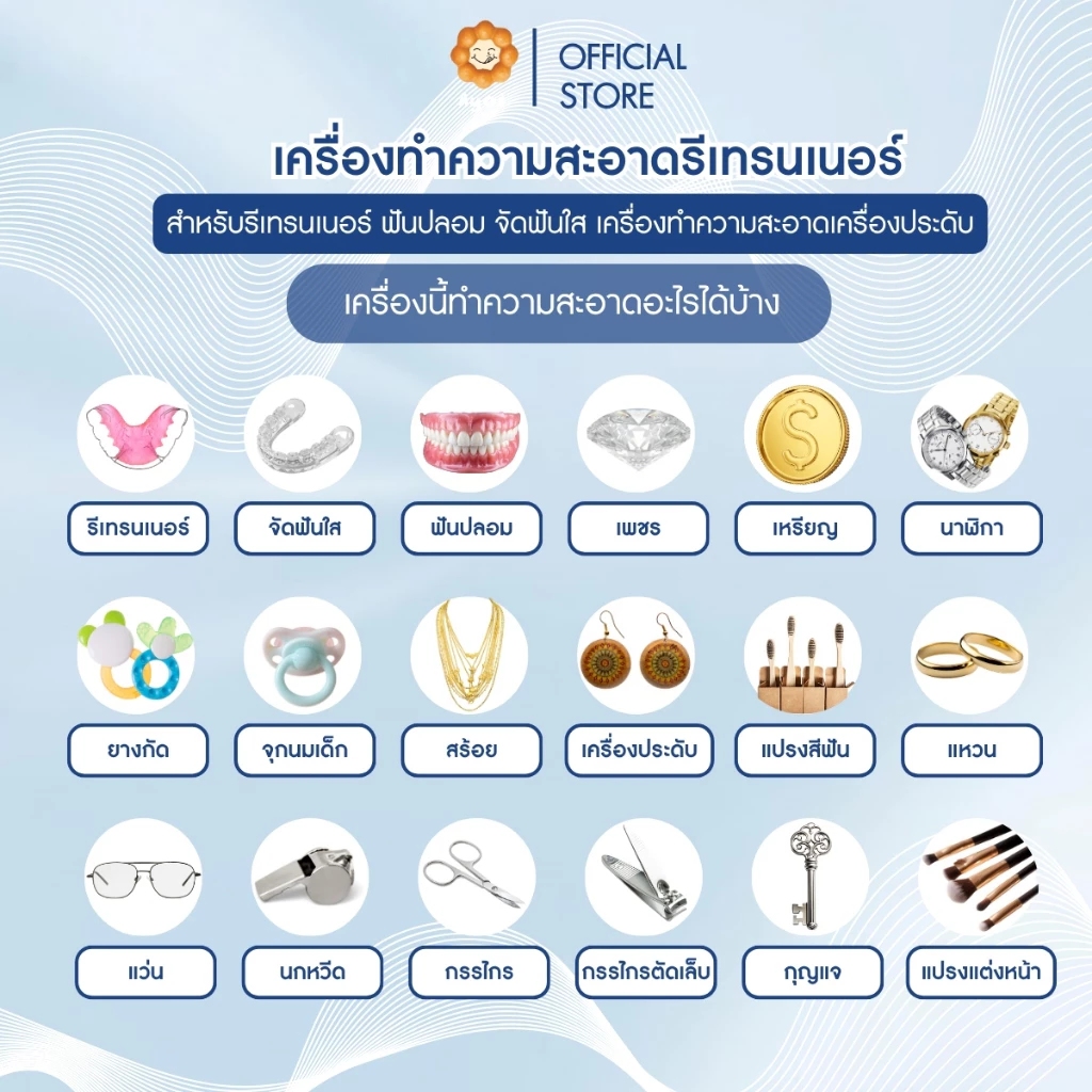 สำหรับผู้ที่ใส่รีเทนเนอร์ ฟันปลอม หรือจัดฟันแบบใสเป็นประจำ เครื่องนี้คือหนึ่งในวิธีที่ปลอดภัยที่สุดในการดูแลสุขอนามัยช่องปากในระยะยาว